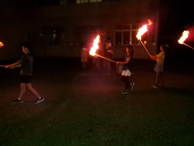 9月11日・12日の2日間、5年生は宿泊体験学習で諫早青少年自然の家に行きました。入所式・オリエンテーションの後、イニシアティブゲームを行いました。午後は昼食の後、沢登りをしました。夜は、キャンプファイヤーを行いました。