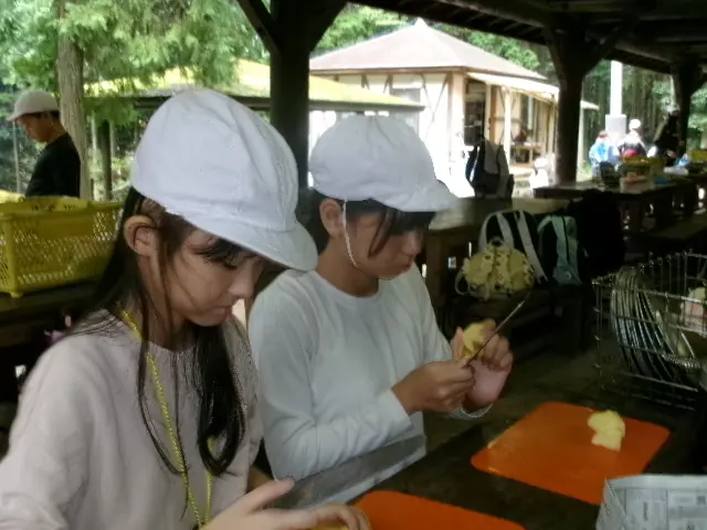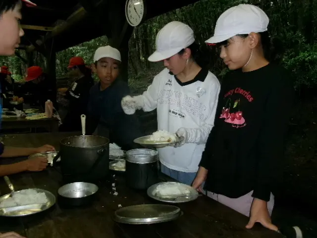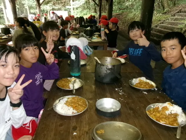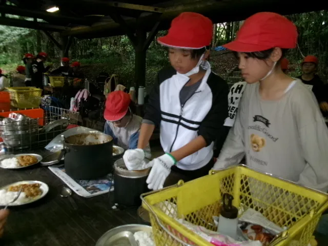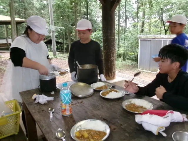 2日目は、野外炊事でカレーライス作りをして、昼食は作ったカレーを食べました。
